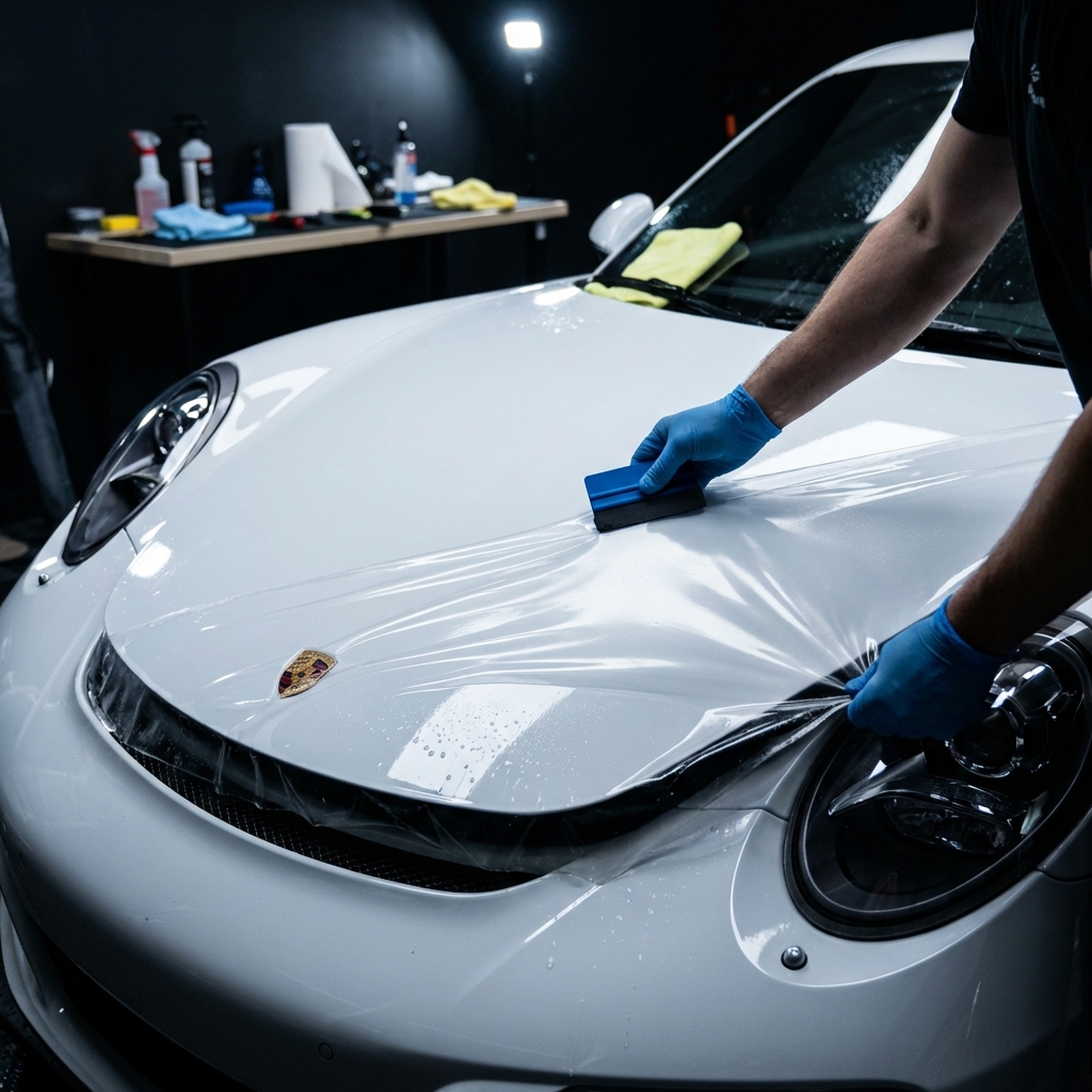 El Paint Protection Film es una película transparente de poliuretano de alta tecnología que se aplica directamente sobre la pintura de tu vehículo. Actúa como una armadura invisible que absorbe impactos de piedras, gravilla, insectos y microrayones del día a día. Nuestro PPF cuenta con tecnología de auto-sanación — los rayones superficiales desaparecen con el calor del sol o agua caliente. Utilizamos exclusivamente marcas premium con garantía de 5 a 10 años.